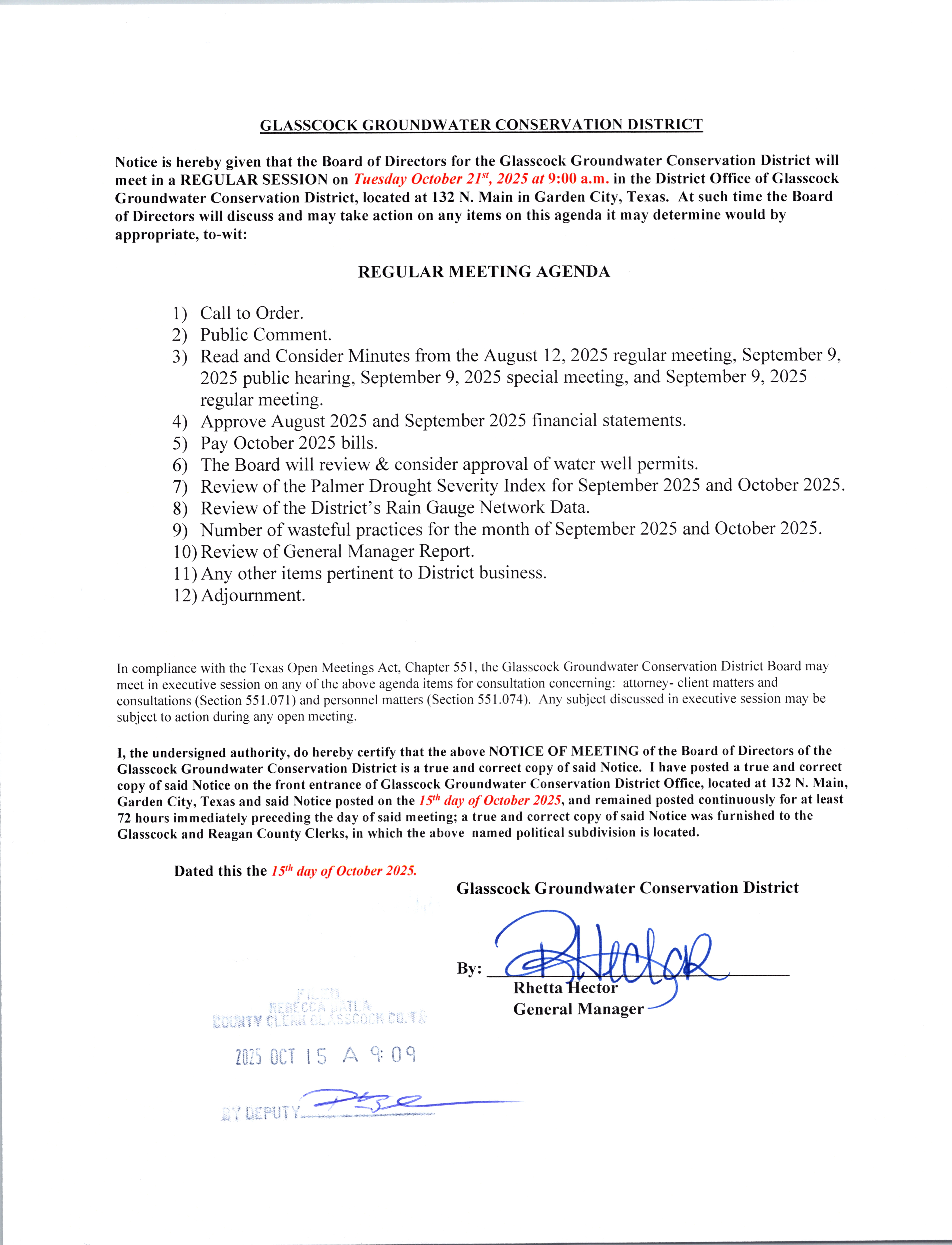 To comply with our Management Plan, the Glasscock Groundwater Conservation District is required to provide area residents with information about water conservation, recharge enhancement, precipitation enhancement, and brush control.